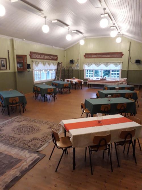 Hyvä kokous- ja juhlatila häihin, valmistujaisiin ja syntymäpäiviin kesäkaudella. Tila on esteetön kahvion, salin, wc:n ja eteisen osalta.
